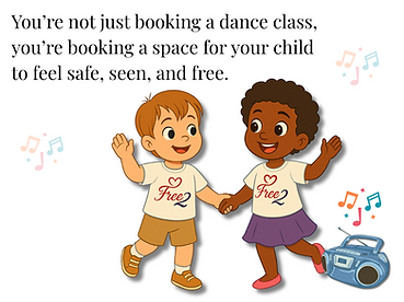 Free 2 Dance gives children the chance to unplug from screens, move their bodies, and feel the joy of freedom and creativity in a supportive, nurturing environment.